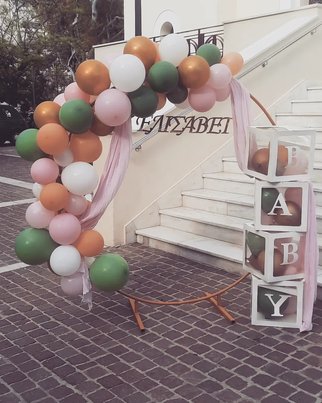 Αψίδα με μπαλόνια και χρυσά στάντ