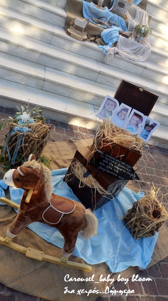 Ένας ρουστίκ και παιχνιδιάρικος στολισμός εκκλησίας, ιδανικός για βάπτιση όπου κυριαρχεί το αλογάκι Carousel.