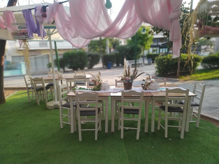 Candy bar τραπέζια και αψίδα για να τοποθετήσουμε τα κεράσματα σας.