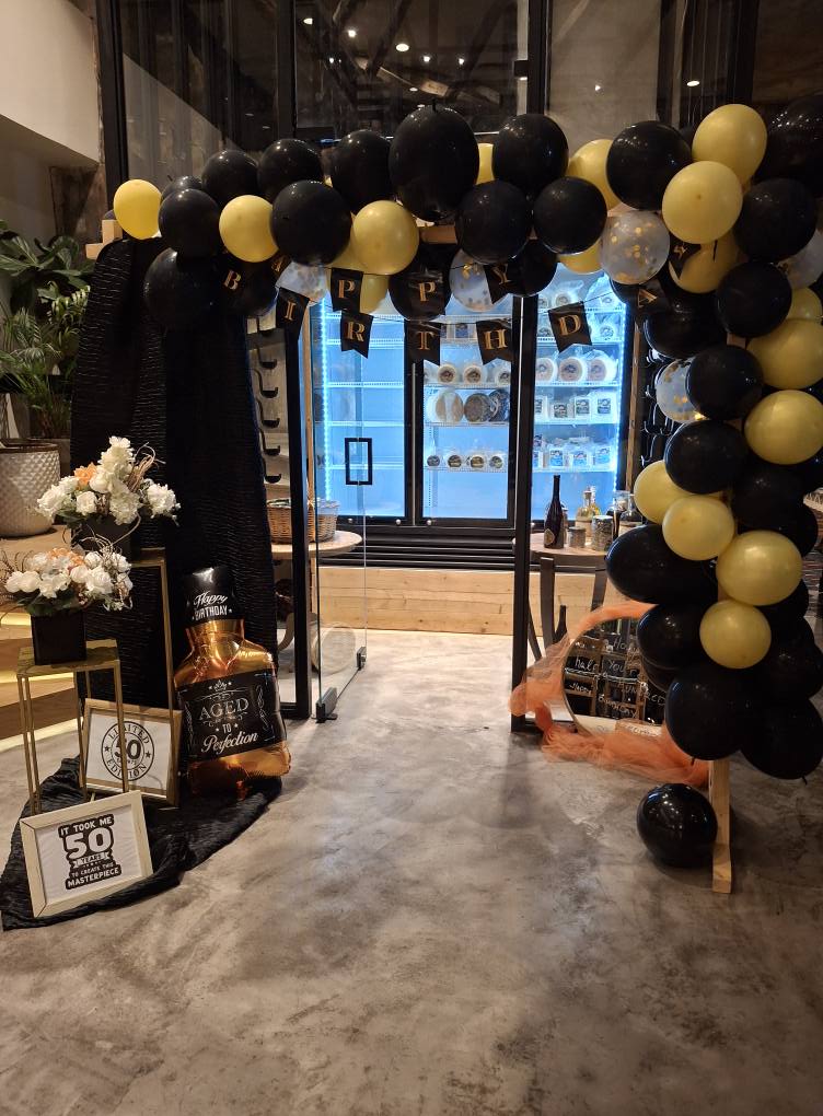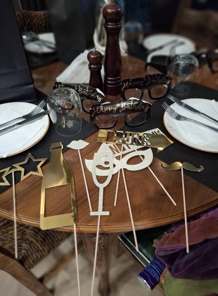 Θεματικός στολισμός γενεθλίων σε εστιατόριο για τα 5ο χρόνια. Ένας chic gold and black στολισμός photo booth για τα γενέθλια σας .