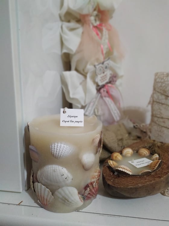 🌊🕯 Χειροποίητο Κερί Διακοσμημένο με Κοχύλια 🕯🌊