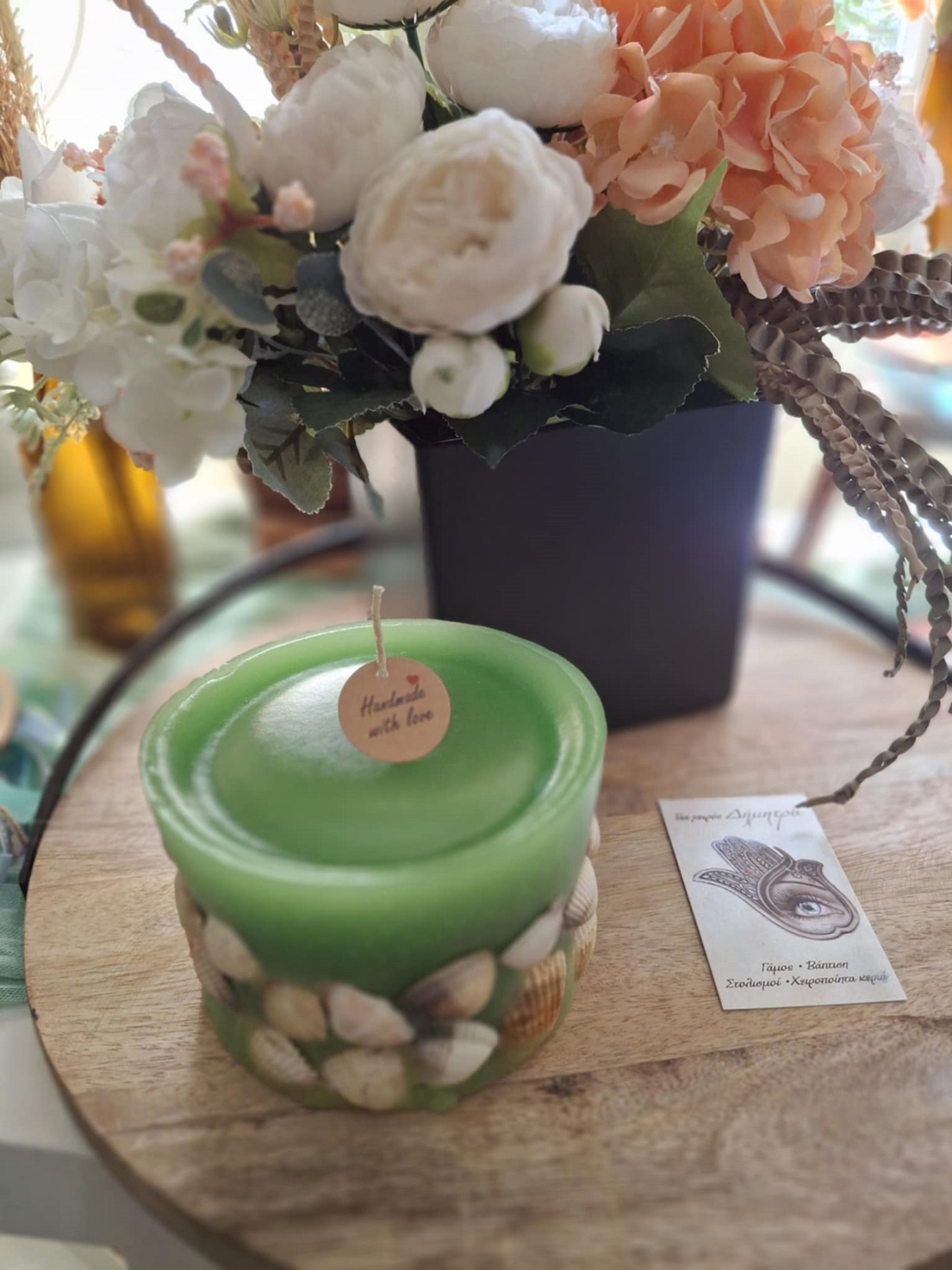 Φέρτε την αίσθηση του καλοκαιριού στον χώρο σας με ένα μοναδικό κερί διακοσμημένο με φυσικά κοχύλια! Ιδανικό για όσους λατρεύουν τη θάλασσα και τις boho διακοσμήσεις.