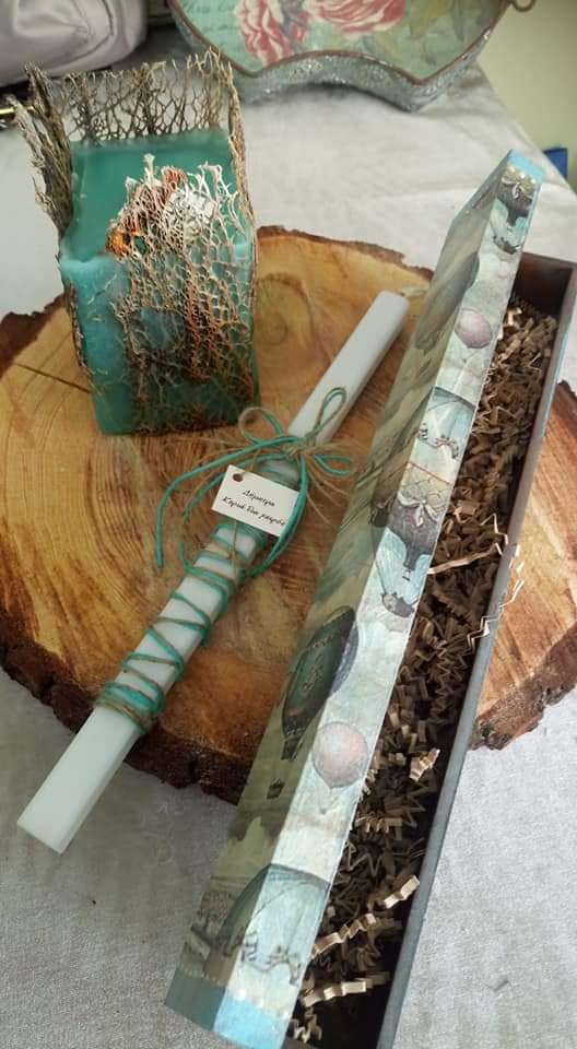 Πασχαλινή Λαμπάδα Χειροποίητο Κουτί Με Vintage Αερόστατα