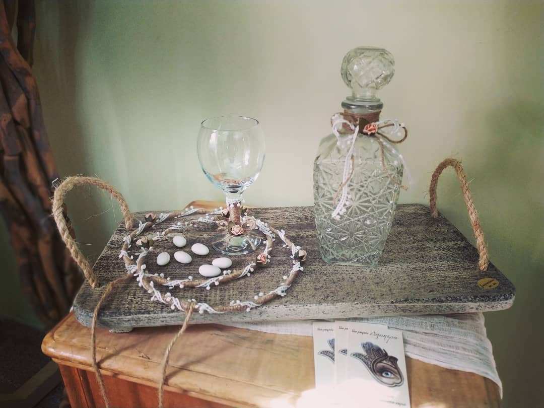 Τα στέφανα είναι φτιαγμένα από λινάτσα και δαντέλα, προσδίδοντας μια ρουστίκ και vintage αισθητική. Είναι διακοσμημένα με λεπτές πλεκτές και στριφτές δαντέλες δημιουργώντας ένα χειροποίητο και παραδοσιακό αποτέλεσμα.