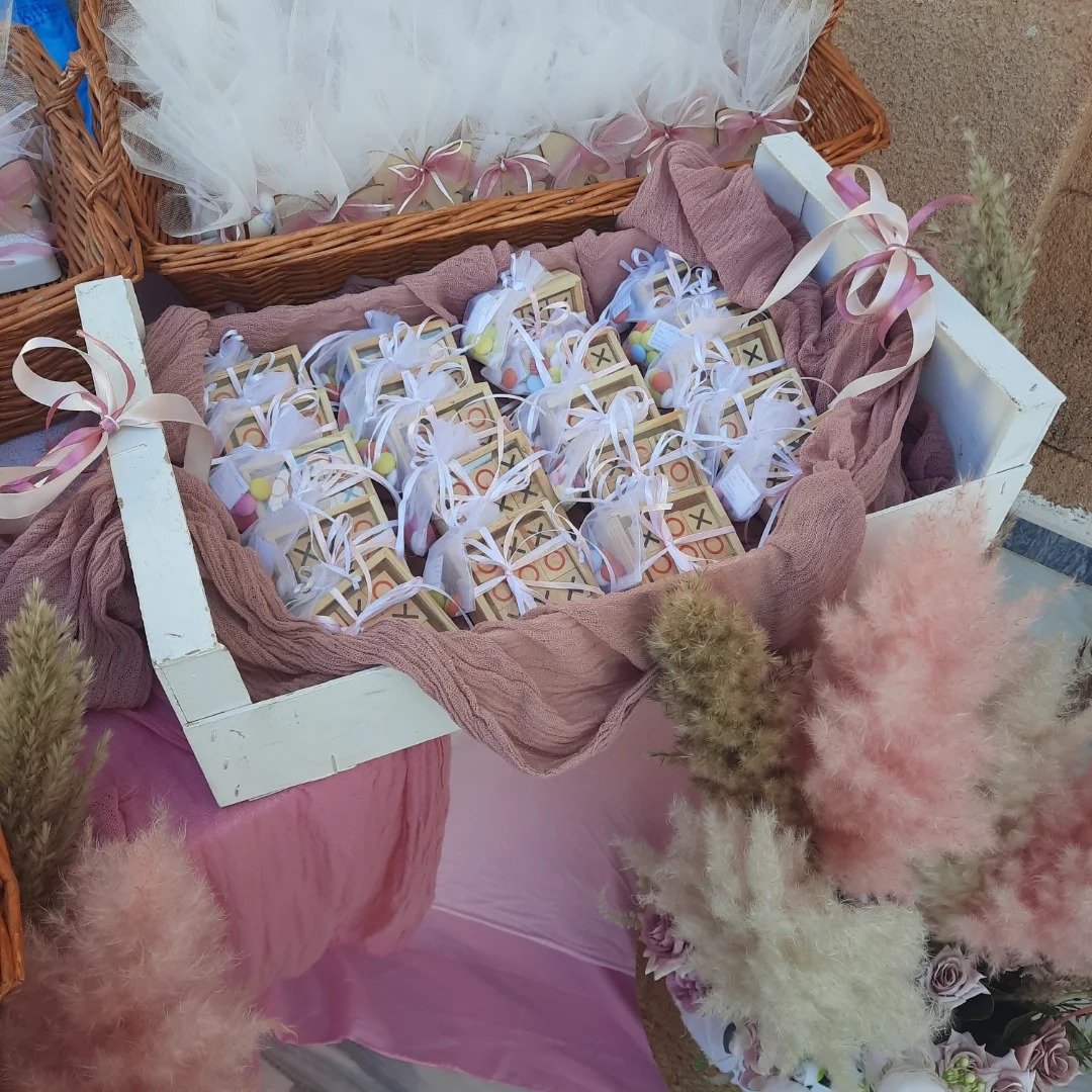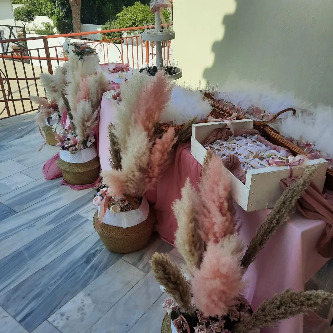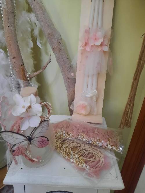 Το σετ έχει έναν αριστοκρατικό και παραμυθένιο χαρακτήρα, ιδανικό για μια κοριτσίστικη βάπτιση με ρομαντική θεματολογία.