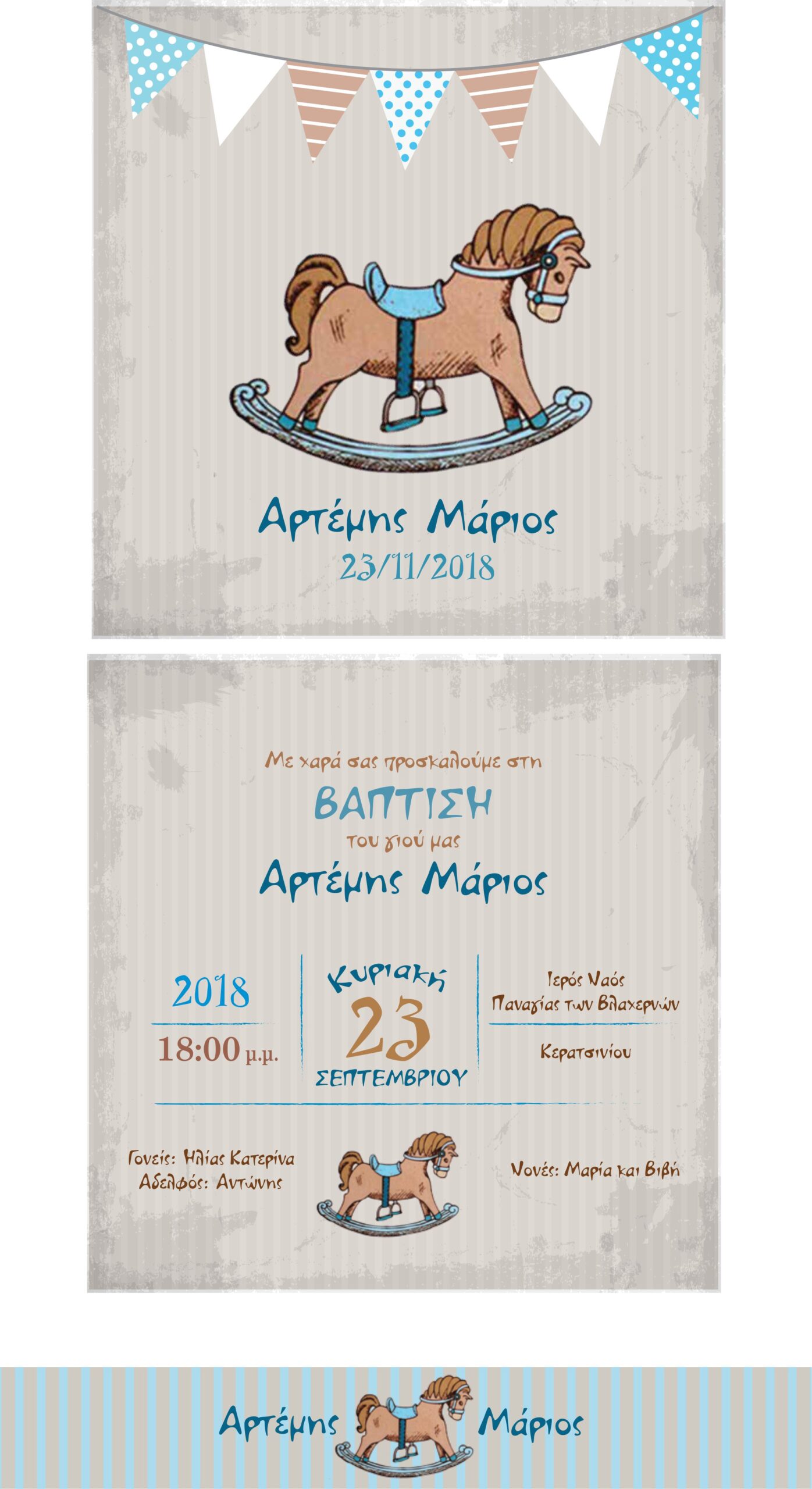 Προσκλητήριο Βάπτισης Μονόκαρτο με Θέμα το Carousel/Καρουζέλ